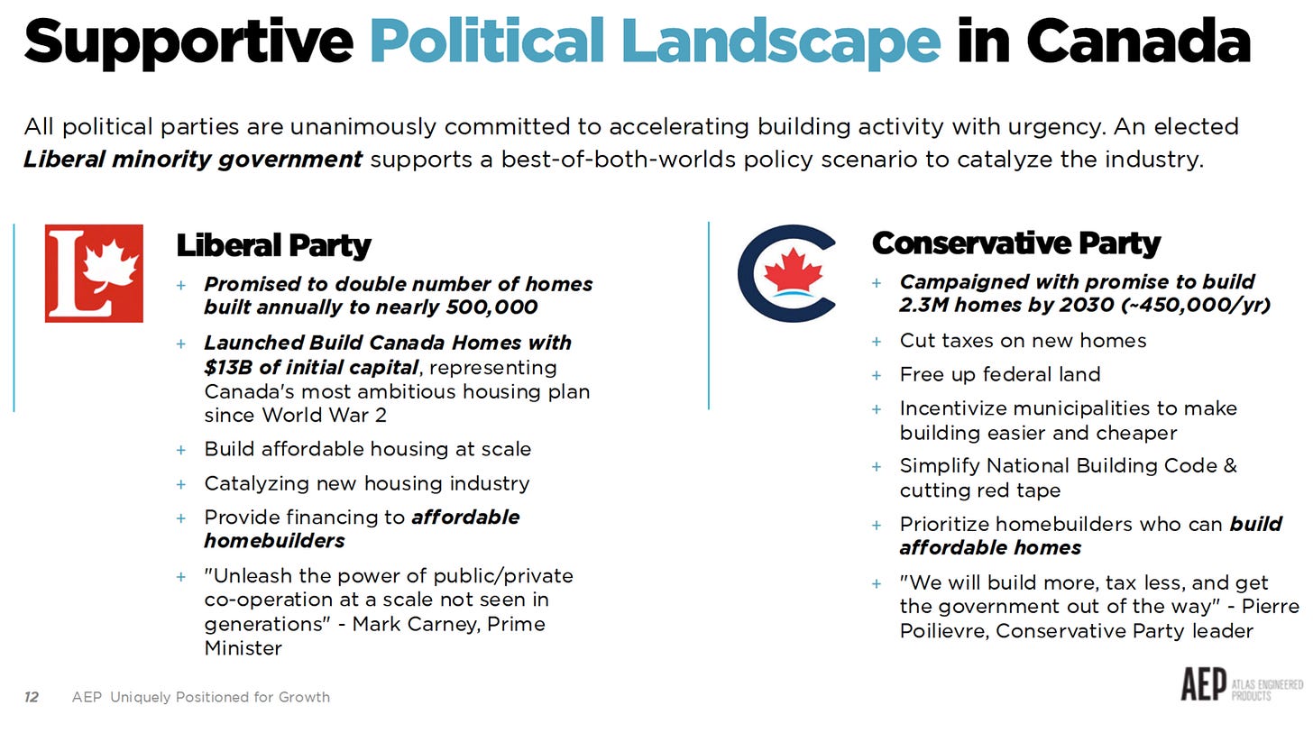 With this backdrop, housing starts in Canada increased 5% year-over-year in 2025 to 259,000 units. Atlas has also noted that quoting activity has improved over the last few quarters.