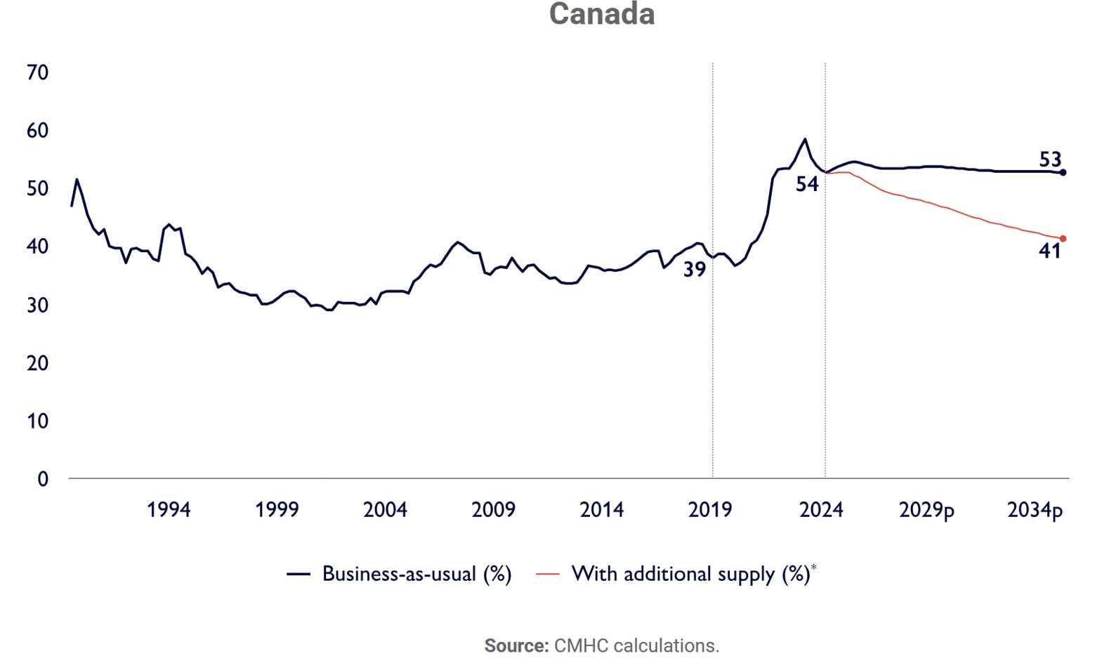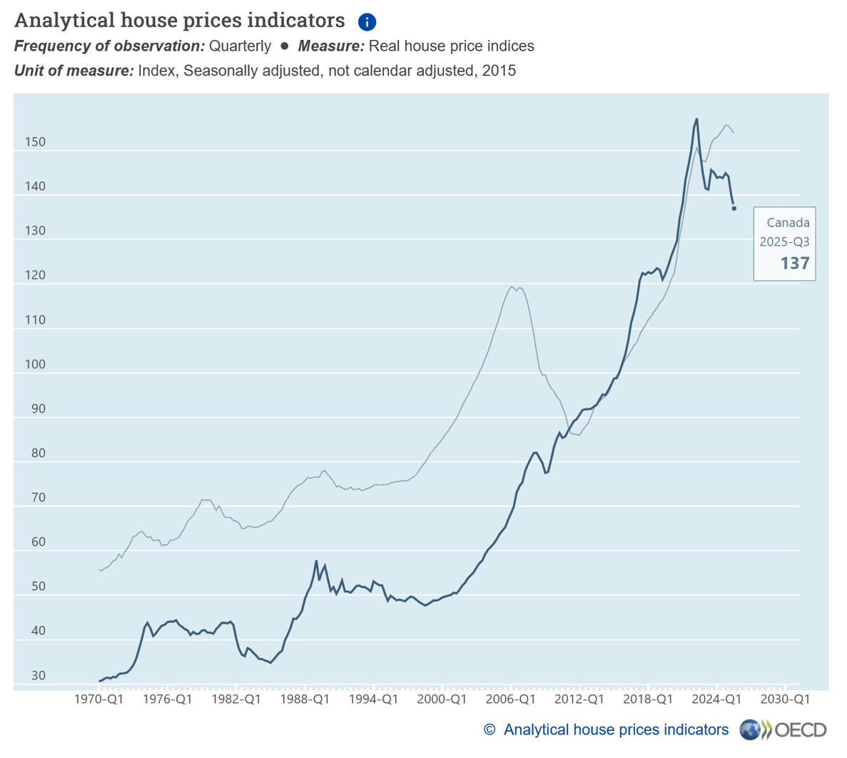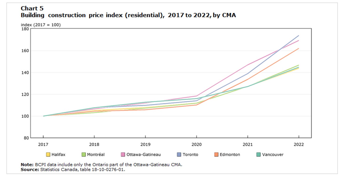 Secondly, affordability remains a major challenge, with OECD charts telling the story. According to Statistics Canada, construction costs in some markets have increased by over 70% since 2017.