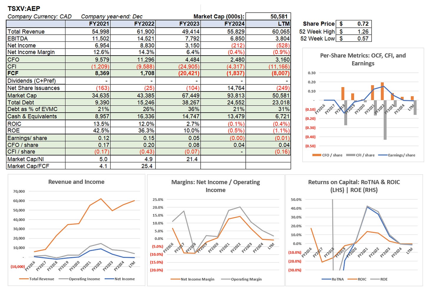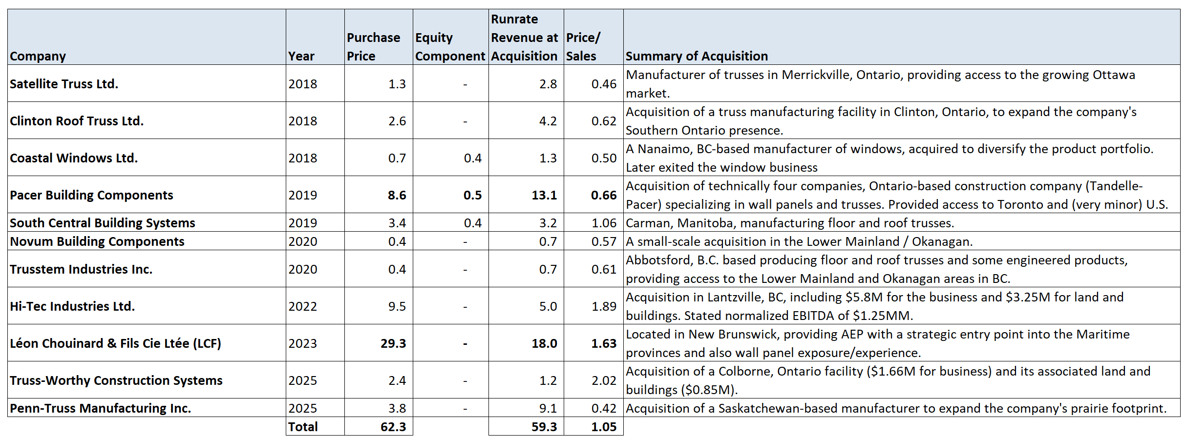 Their strategy has been quite thoughtful, focusing on concentrating facilities in less competitive markets. They take on one to two acquisitions a year, though interestingly 2024 was quiet as sellers likely wanted to be priced off of COVID sales and margins while they were digesting LCF and capex spend was ramping up. They have been able to make acquisitions at very low EBITDA multiples. LCF was a major acquisition, albeit coincided with a challenging market nationally. This has hid high utilization of these assets.