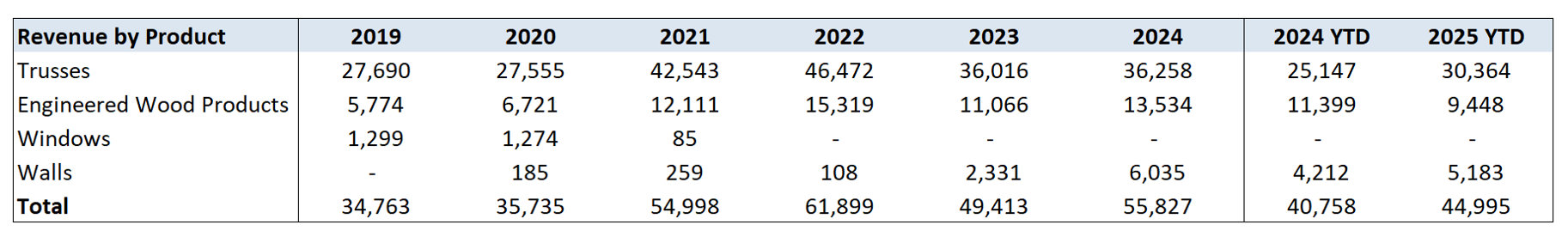 There might be better long-term economics in trusses vs lumber, given the limited capital available to most truss companies due to their small size and regional nature of truss manufacturing.