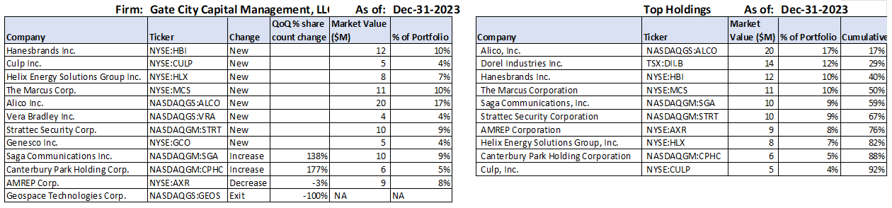 An example of this is Gate City Capital Management and their holding in Strattec, which is meaningful in their relatively concentrated book. Here is an interview with their founder Michael Melby.