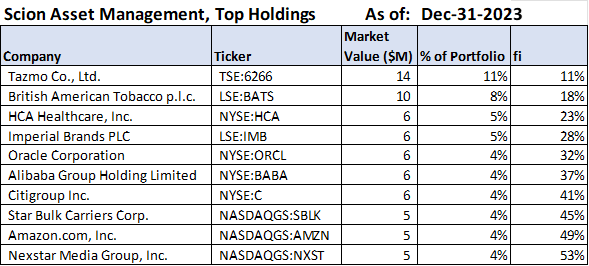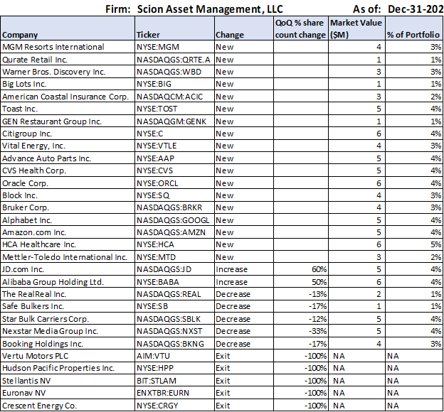 And Michael Burry of Big Short fame via his firm Scion is always a fun look. He can definitely be described as… active. He has many smaller trades in and out, but does have some material counter-consensus investments like BAT and Alibaba currently.