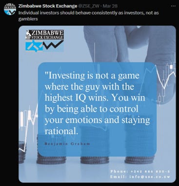Importantly, the ZSE is a Ben Graham fan, or at least someone working on their Twitter account team is.