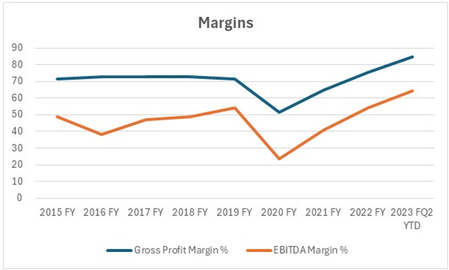 Of course, the problem is inflation and it is high enough that it is obscuring meaningful volume declines. As per their half-year update for 2023:
