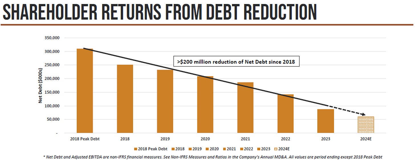 Calfrac’s Q3 was challenging in the U.S., but Argentina and Canada continue to do well. Capex spend should slow in 2025, unless investment opportunities are worthwhile. Note that the chart per share metrics reflect the previous painful debt conversion.