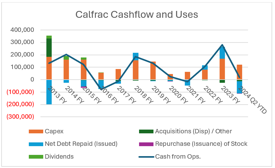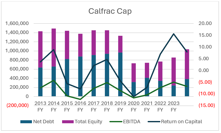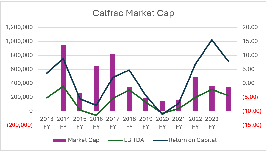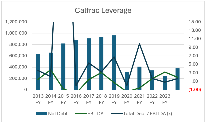Both companies just ran with too much leverage for this industry and have been paying for it. As shown below, you should be able to guess about when Calfrac’s restructuring occurred. What drove it? The early 2010s boom of cheap capital and optimism led to significant over-investment in all types of services.