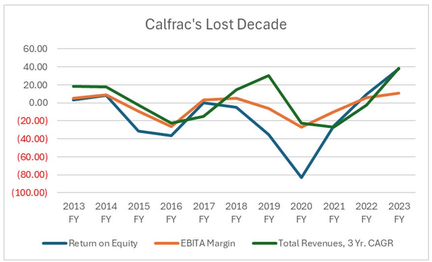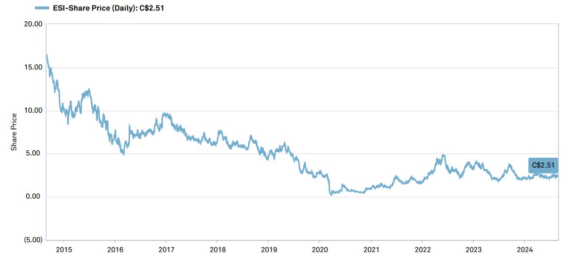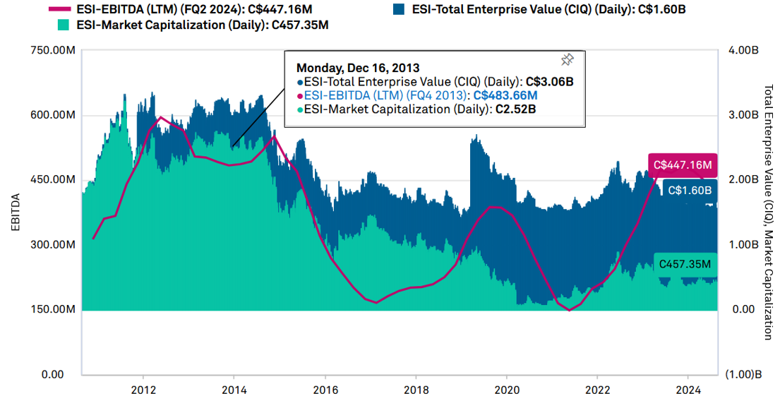 To say investing in the North American energy services industry has been unpleasant is like saying a lobotomy is mildly uncomfortable. The sector has faced relentless headwinds over the past decade, with collapsing oil prices, regulatory challenges, and pipeline constraints (in Canada) severely limiting growth. Companies like Ensign Energy and Calfrac Well Services saw their stock prices plummet as demand for drilling and fracking services dried up during periods of low commodity prices. Additionally, the shift towards ESG-focused investing and the transition to renewable energy has left traditional oilfield services struggling for investor interest. Even when oil prices rebounded, oversupply of equipment and intense competition led to poor profitability and high debt loads, making the sector an investment minefield.