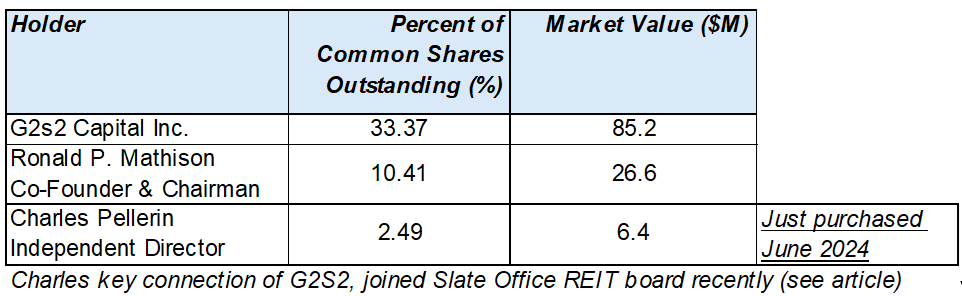 The key owner now at Calfrac post-restructuring is G2S2. We have written about them previously (see our articles on Clarke, Inc., and more importantly, Slate Office REIT) where they are the key shareholder there.