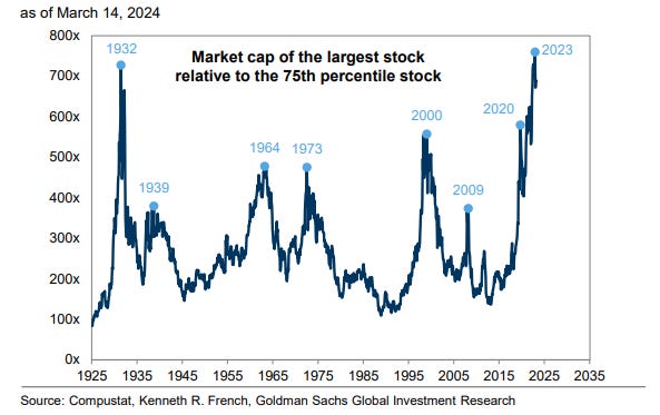 As of this March, concentrations of expectations in the largest of caps have never been higher.