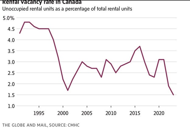 As a follow up, we wanted to highlight two charts that put in perspective the unfolding housing crisis. First, vacancy rates nationwide are now at the lowest level since the early 2000s. Secondly, Canada’s ability to create new housing continues to worsen. Compared to 1995, it now takes at least twice as long to build all types of housing. Mainstreet is well positioned; they provide renovated properties at a reasonable price while they are the best team in town at buying good deals to renovate, never mind potential redevelopment opportunities in their portfolio.