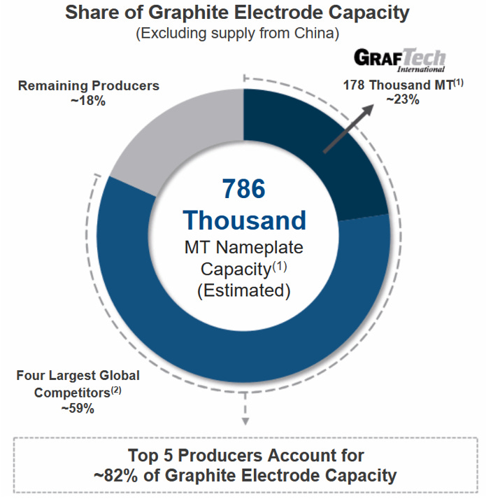 2 - Represents combined capacity for four largest non-Chinese competitors, which are Resonac Holdings Corporation, HEG Limited, Tokai Carbon Co., Ltd. and Graphite India Limited.