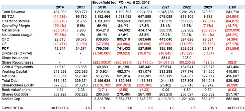 We first want to acknowledge just how painful things have become. Cash flow has dried up and the market cap today at ~$500MM is less than the total of recent repurchases, though the stock is above the bottom earlier this year (share price today of ~$2 vs 52 week low of $0.52).