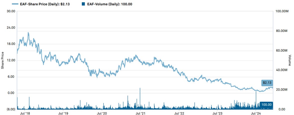 If you are not familiar with GrafTech, we suggest you read our 2023 article first that covers what graphite electrodes are, Brookfield’s pitch for the 2018 IPO, and the Monterrey Mexico plant strike that had a significant impact on the business. https://www.canadianvalueinvestors.com/p/GrafTech-nyseeaf-analysis-may-2023