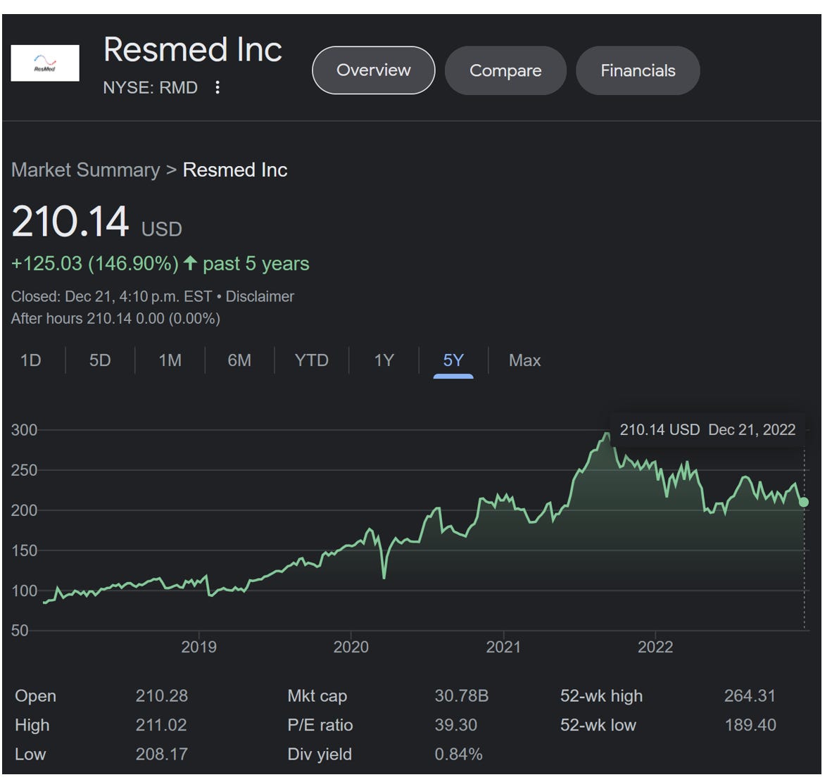 It is interesting to note that ResMed’s market cap is ~US$30 billion and trades at quite the frothy multiple. They do appear to have a better product and are benefiting from the recall, but we cannot get our heads around the price.