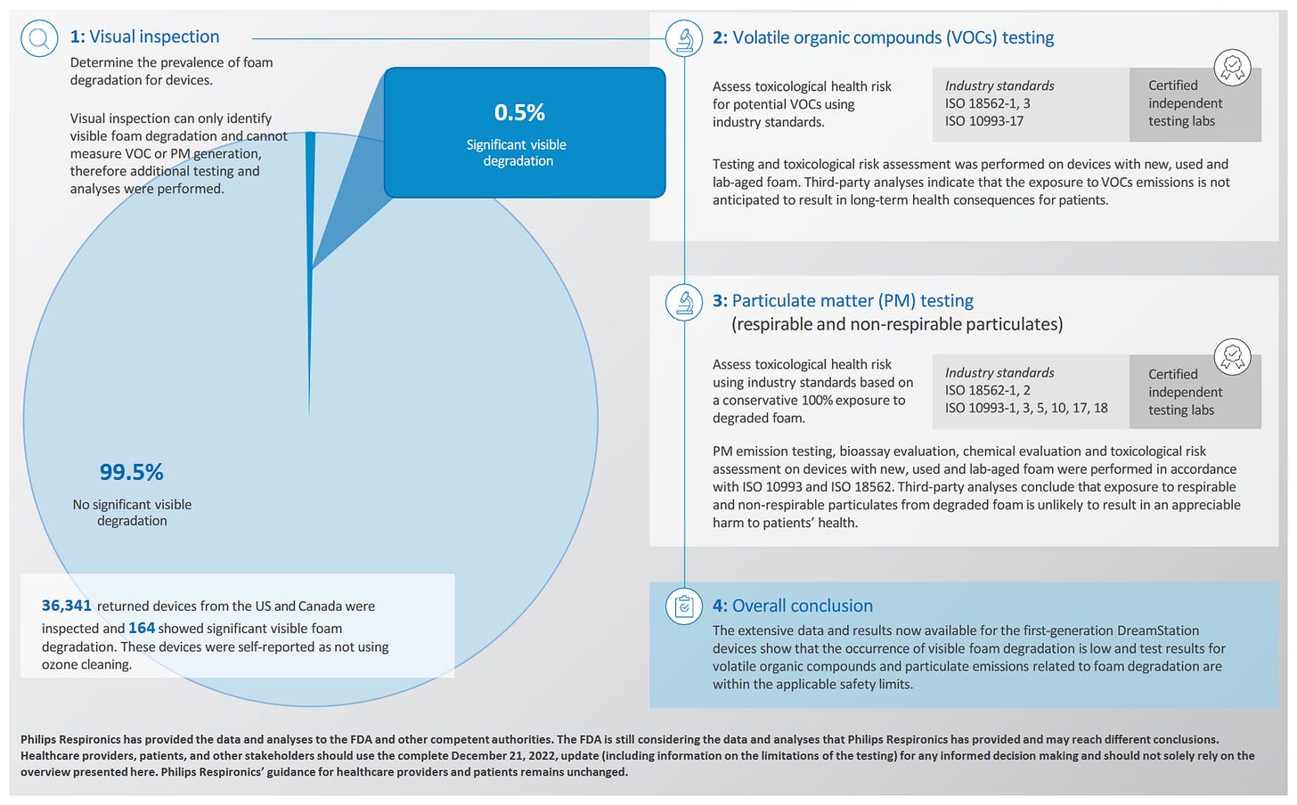 Subsequent to our analysis, Philips provided an update on December 23rd, what we are calling the Christmas Update. This appears to be better than the worst-case scenarios contemplated and better than the company’s initial guidance (extrapolated from early reports before lab analysis). The full report can be found here - https://www.philips.com/c-dam/corporate/newscenter/global/standard/resources/healthcare/2022/respironics-update/philips-respironics-update-on-pe-pur-testing-results-and-conclusions-available-to-date-complete-update-21122022.pdf