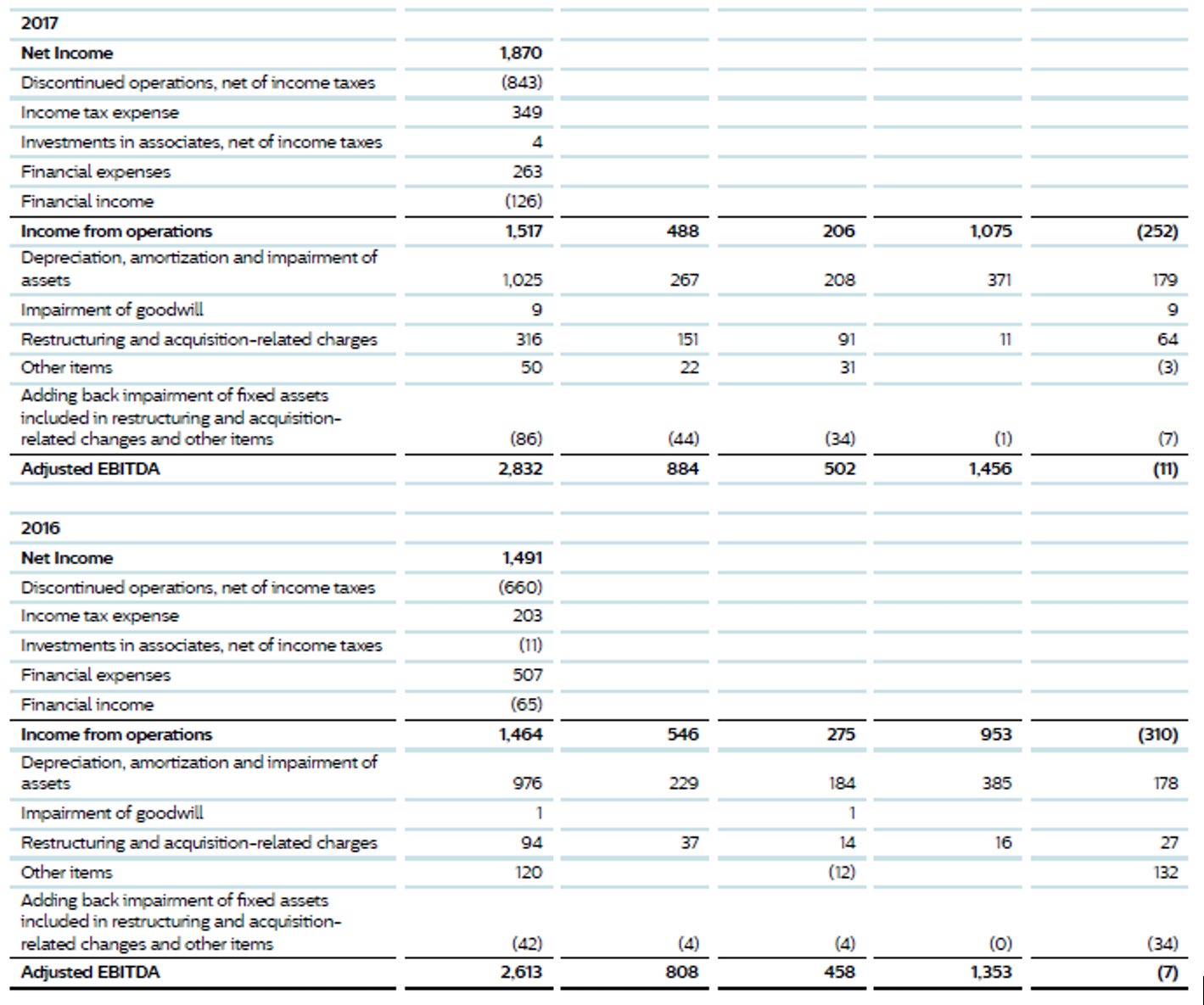 One thing we note is continued restructuring costs. They have indeed been doing major restructuring, and the costs are real, but they are also occurring every year. In turn, we are not adding back in these costs, unlike management.
