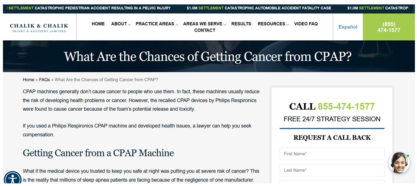 https://www.chaliklaw.com/philips-cpap/what-are-the-chances-of-getting-cancer-from-cpap/