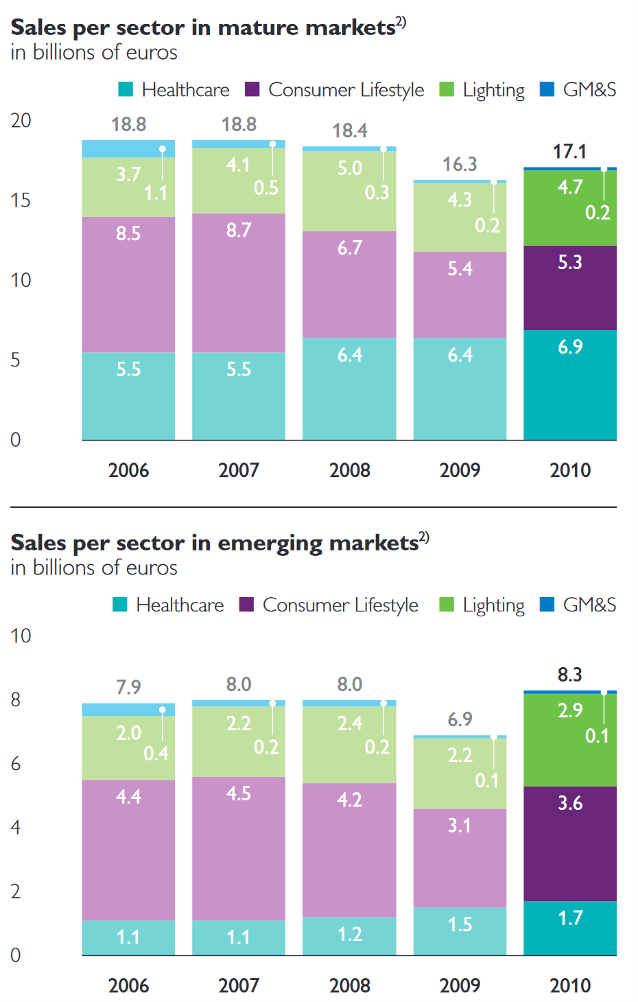 We argue that Philips’ retained healthcare assets are a relatively good business. For context, here is their performance back in the financial crisis.