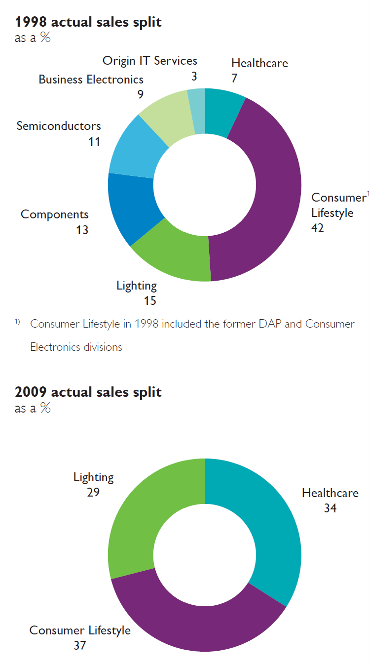 In the case of Philips, they continually “sharpened their strategic focus”, selling off divisions while building up the remaining. They sold a number of divisions by the late 2010s and were left with three “core” businesses.