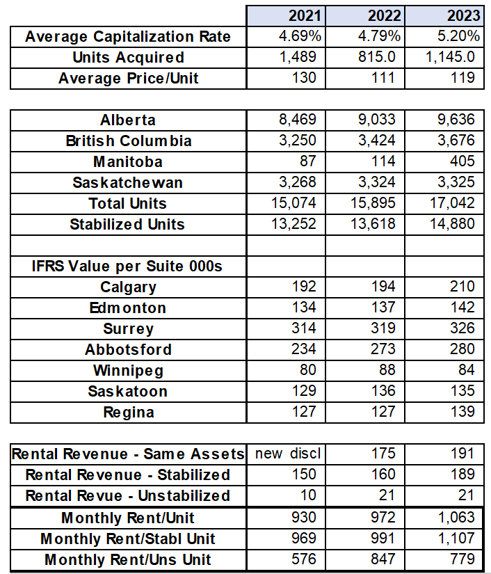 1) The housing shortage in Western Canada is finally leading to serious pressure on rents and their portfolio of relatively low-cost rentals is positioned very well. It is important to keep in mind that Mainstreet built their empire in a relatively terrible period for Alberta.