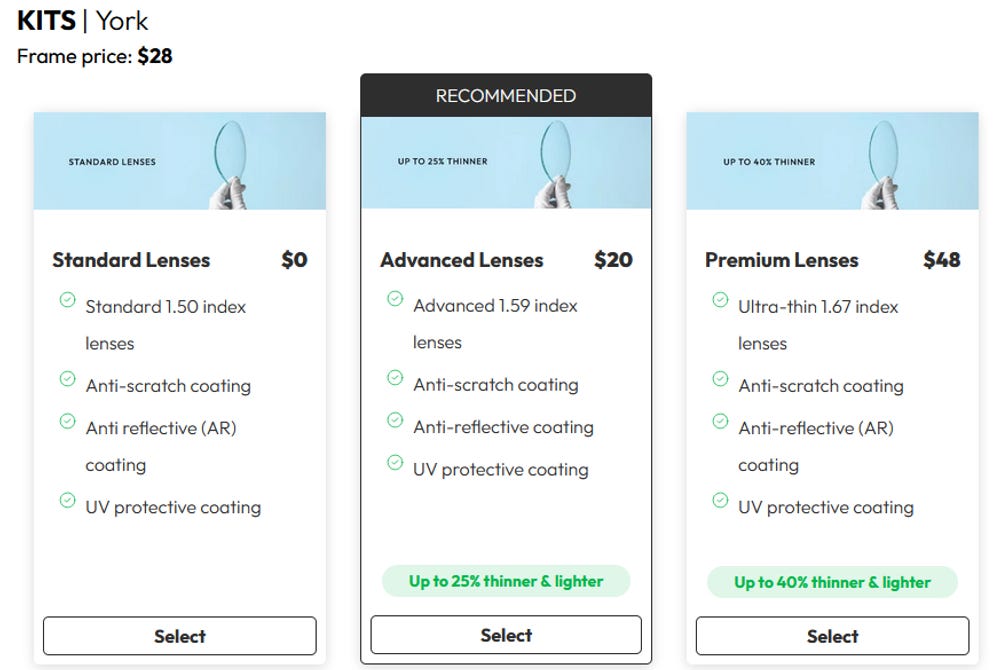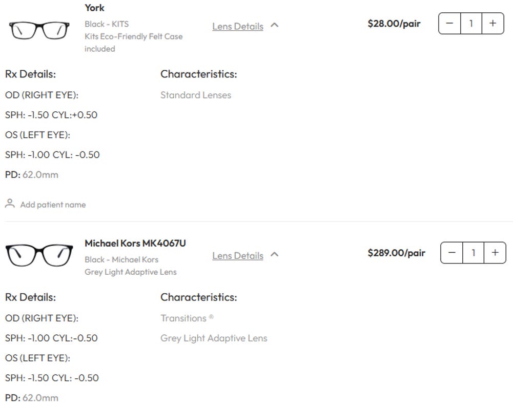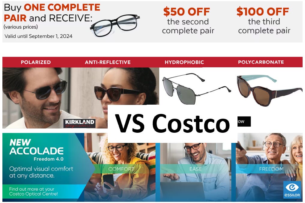 When customers add things like thinner lenses or choose designer frames it gets more expensive (and higher margin) but remains much cheaper than our retail channel checks. An exception would be Costco. As Costco customers who have bought glasses at Costco, we think that they are by far the strongest retail competition.