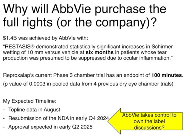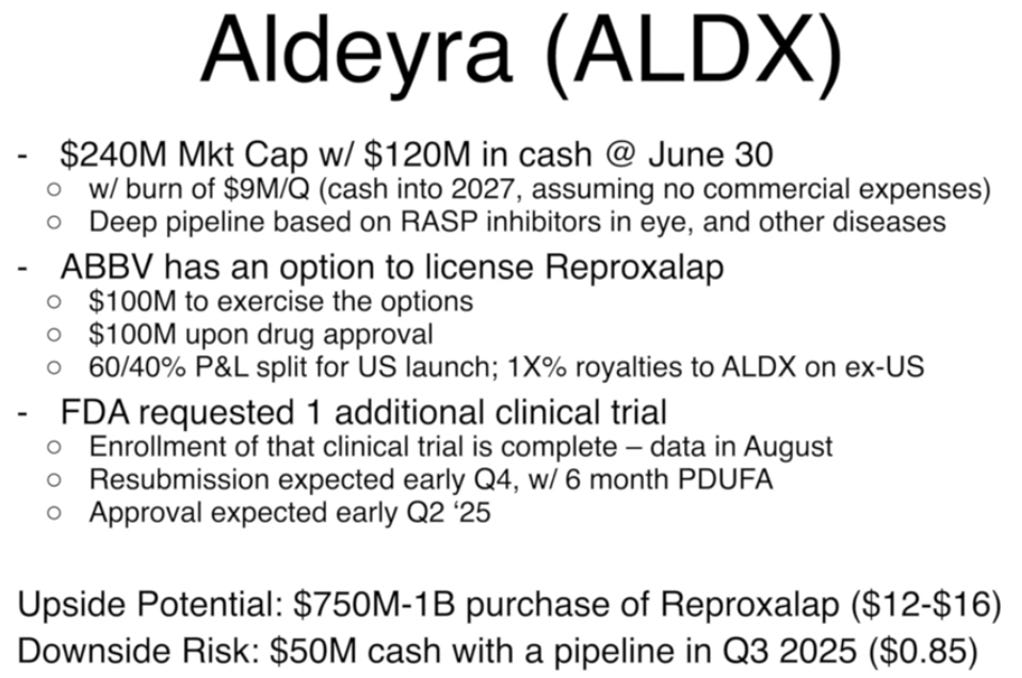 Note: They subsequently received good news about the trial shortly after this presentation and the stock price jumped. https://ir.aldeyra.com/news-releases/news-release-details/aldeyra-therapeutics-achieves-primary-endpoint-phase-3-dry-eye