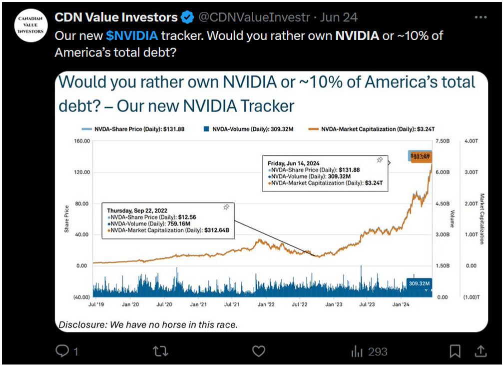 Back in June we asked ourselves… if someone forced us to hold either NVIDIA or U.S. Treasuries for the next five to ten years, which would we want? We voted Treasuries.