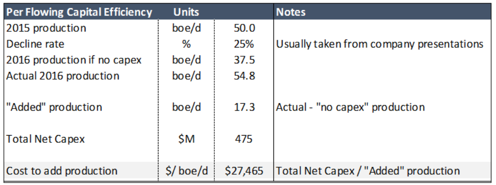 The other common way to measure capital efficiency is to look at $/ boe/d.