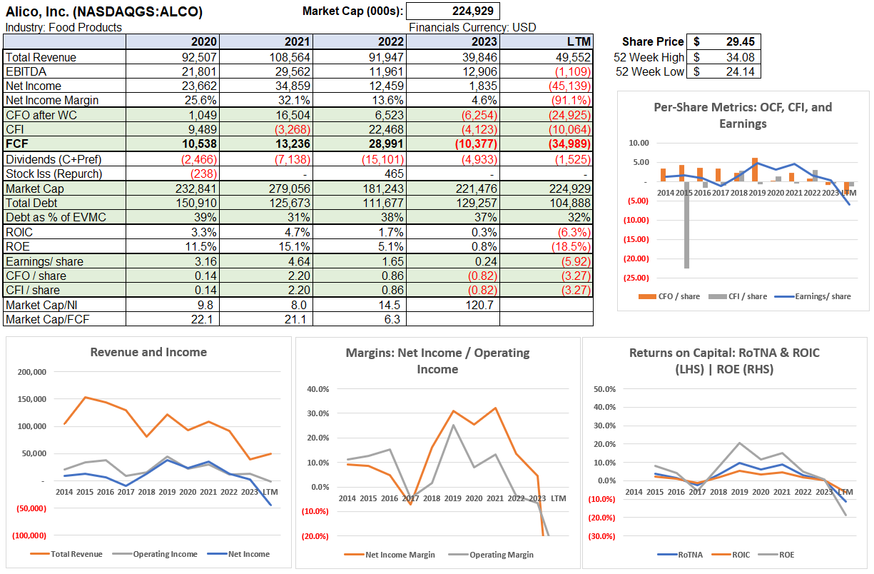 Alico is an agribusiness company primarily engaged in citrus production and land management in Florida. It is one of the largest citrus producers in the U.S., supplying raw fruit for processing. One to watch; they recently announced they filed a development application to build a 3,000 acre community in Florida.