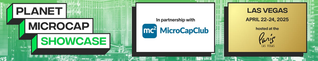 The Planet MicroCap Showcase is being held next week in Las Vegas from April 22nd to 24th and once again brings together an amazing slate of microcap companies, investors, and industry participants. The conference is being hosted in partnership with MicroCapClub, another great organization.