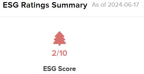 Unfortunately, for those that worry about these things, this portfolio gets a “needs improvement” grade when it comes to ESG according to our broker.