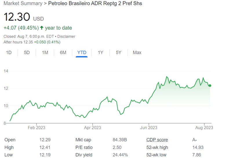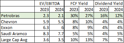 For context, even with the increase in share price, this is how it is trading relative to a few well-known names using recent analyst estimates available to us. They have different assumptions than we do, but directionally it provides an indication of how they are being priced relatively using similar analyst assumptions for oil prices. Should PBR trade like Saudi Aramco or Chevron? Probably not, but maybe not so relatively cheap either. The key concern remaining for us is will their domestic diesel/etc pricing remain profitable, or will political pressure crush margins?