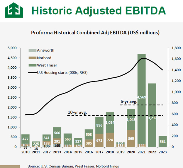 West Fraser is another great case study (no position). COVID cash flows dwarf the previous decade.