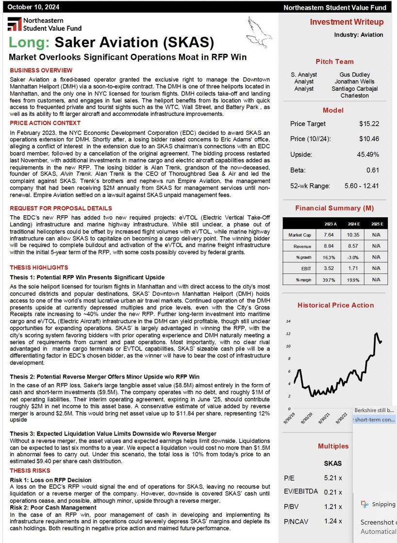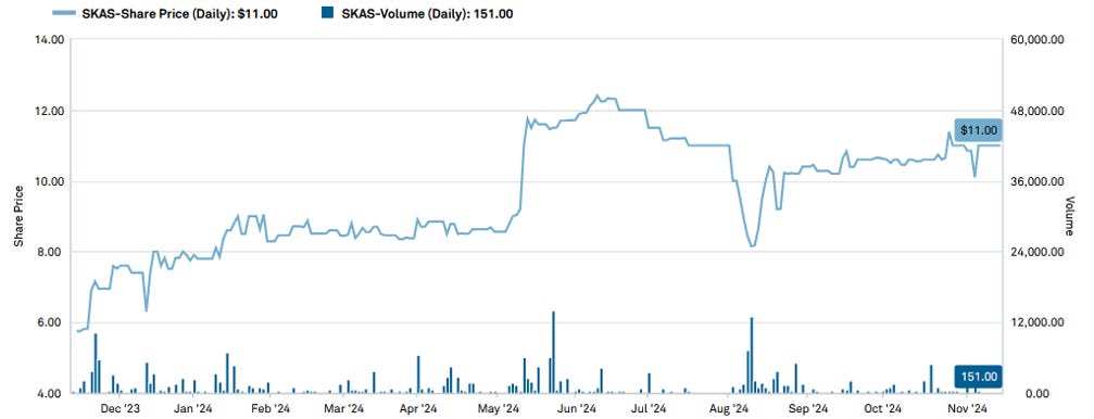 Saker is one of our favourite holdings, partly because we get to say we are part owners of a (leased) heliport in New York City at cocktail parties. It also might work out well as an investment. We first wrote about them in May - https://www.canadianvalueinvestors.com/i/144567273/is-saker-aviation-skas-taking-off-or-grounded
