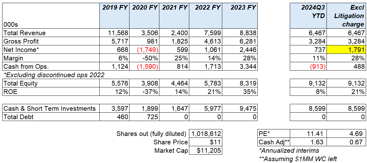 They released their Q3 results. The good news is they finally resolved their dispute with Empire, with Saker paying $1.4MM. The bad news is the new contract has not been awarded, but at least the interim agreement has been extended.