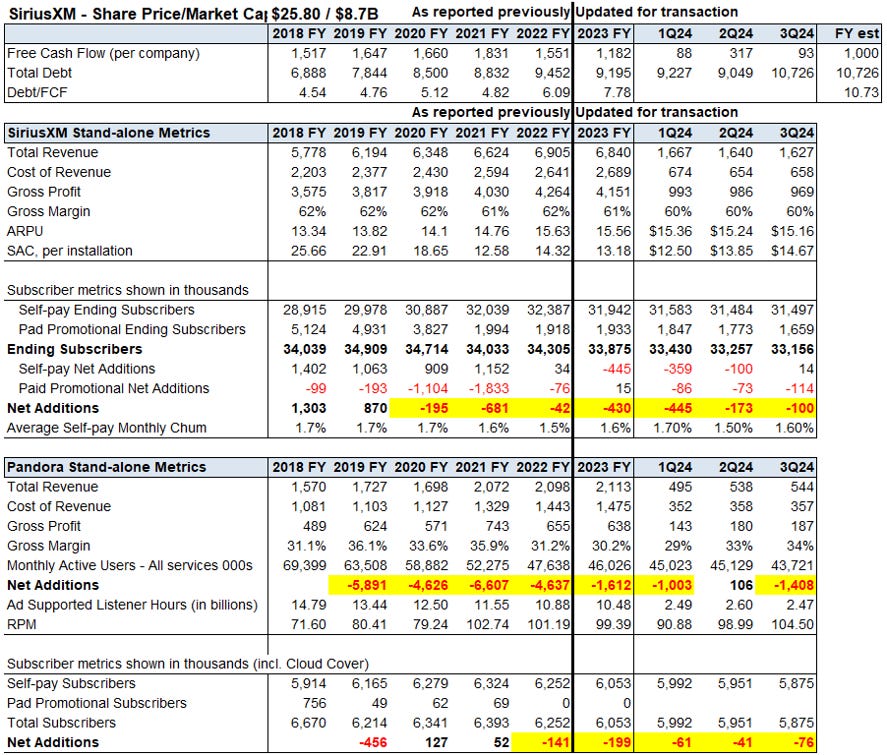 We have written about SiriusXM a few times now, most recently here - Liberty Sirius SIRI / LSXMA / LSXMK: In Ted Weschler we trust, August update https://www.canadianvalueinvestors.com/p/liberty-sirius-siri-lsxma-lsxmk-in
