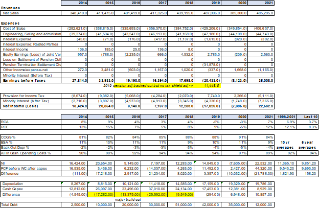 Here’s the recent financial performance. Note the material capex for facility expansions in both the U.S. and Mexico, and noise from pension wind up. We were concerned about how inflation would work its way through, and it did turn out to be a problem. Fixed price contracts and rising input costs put a major squeeze on financial performance. However, there has been some relief – e.g. the Company noted in Q1 FY2024 $10.8 million in revenue renegotiated pricing relief, of which $8.0 million was one-time retroactive pricing.
