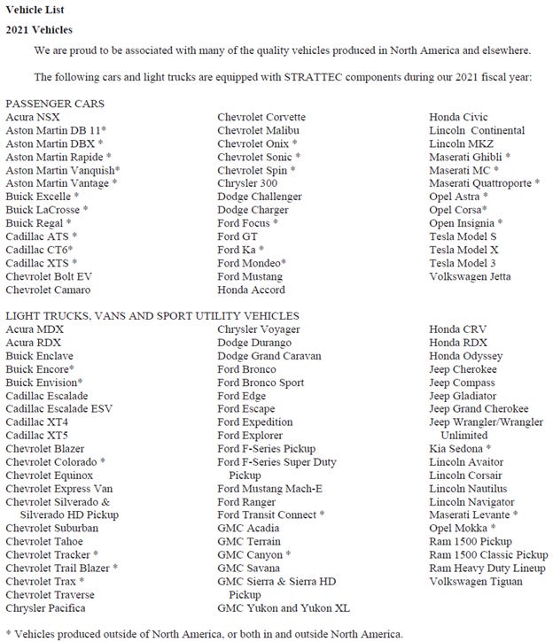 The models they are supplying are quite stable with customers weighted heavily to U.S. automakers and models (see 2012 vehicles supplied vs 2021 below). They contribute to some high-volume models like the Chevrolet Silverado. https://www.caranddriver.com/news/g36005989/best-selling-cars-2021/