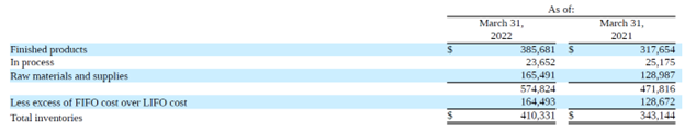 The impact is meaningful, particularly with the recent COVID inflationary bulge. Of course, this means that if tax rules change there is a tax bill due, and as of this spring, “should LIFO be repealed, the $41.4 million of postponed taxes, plus any future benefit realized prior to the date of repeal, would likely have to be repaid over some period of time.”