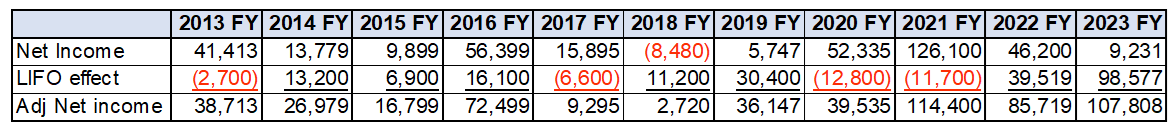 Adjusted earnings – “LIFO Reserve Adjustment”