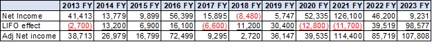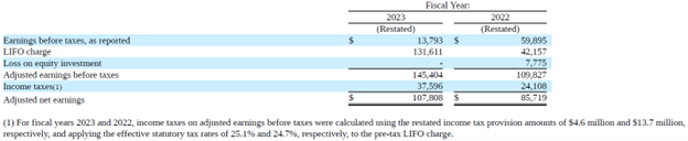 Adjusted earnings – “LIFO Reserve Adjustment”
