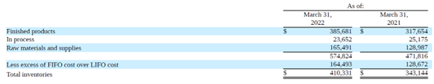 An overview of LIFO vs FIFO be found here, but effectively this means that in an inflationary environment it helps Seneca reduce/delay cash taxes while understanding the current earnings power of the business. https://www.investopedia.com/articles/02/060502.asp