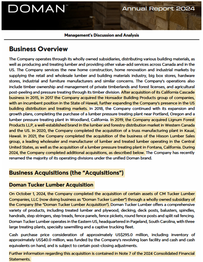 Acquisitions are happening for some, at least at key competitor Doman Building Materials Group Ltd. (TSX: DBM currently trading at 8-11x P/E, depending on estimates subject to Trump noise, while having significant debt).