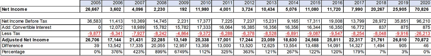 How disastrous was this financing? Very. If you back out the now retired convertible interest net income, the actual bottom line business performance looks dramatically different.