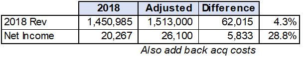 Note that the Company’s disclosures make it very hard to parse the detail by division, but the acquisition notes and subsequent performance give you an indication. Adjusted revenue and net income as follows.
