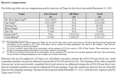In late 2003, Genghis S.á.r.l. ("Genghis") (formerly 3Cs Investments Limited) acquired an approximate 19.6% equity interest in Taiga, primarily through the purchase of approximately one third of Berjaya’s interest in Taiga, and Dr. Kooi Ong Tong, a representative of Genghis, was appointed as a director and chairman of the Company.