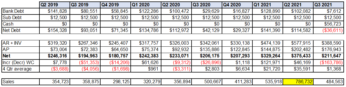 The volatility and COVID sales boom helped them completely de-lever into net cash position compared to ~$240MM of debt in 2017. Note the Company has a $250MM credit facility.