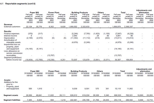 In 1H2023, the paper manufacturing division’s revenue declined by 41% to S$12.521 million from S$21.327 million in 1H2022, as we restrategised and discontinued producing several product lines. Despite the sharp drop in sales, pre-tax losses for the division narrowed to S$1.99 million in 1H2023, compared with pre-tax losses of S$2.312 million in 1H2022.