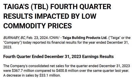 Well, well, Taiga Building Products. A recapitalization and COVID boom turned Canada’s largest independent wholesaler of building products into a totally de-levered pile of cash trading at low single digit P/E. Oh, they also have a growing U.S. distribution business and another business or two under the hood. But what are they going to do with that cash? We are starting to find out.